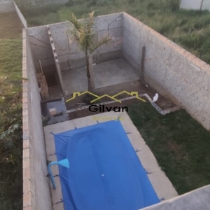 Espaço gourmet não finalizado com piscina e amplo quintal.