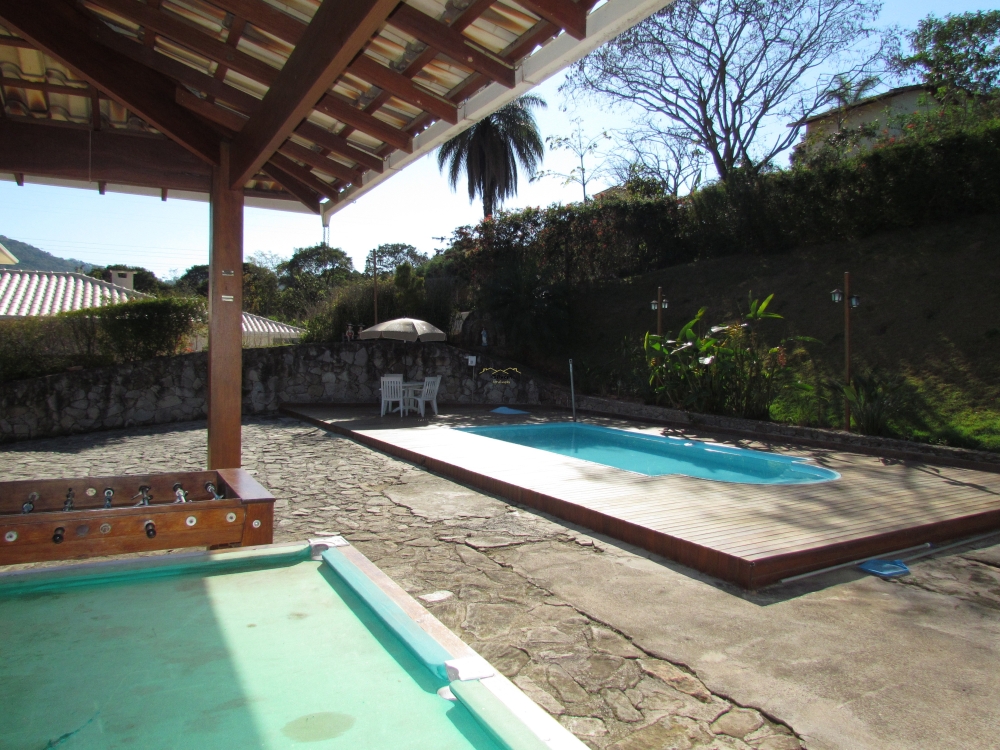 Área externa com garagem para 02 carros que tem utilização como área gourmet e piscina.
