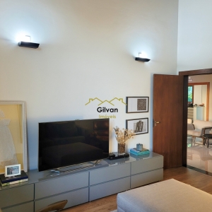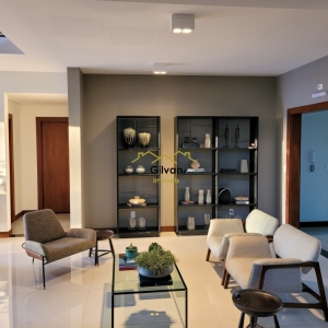 Sala ampla em ambiente integrado a sala de estar.