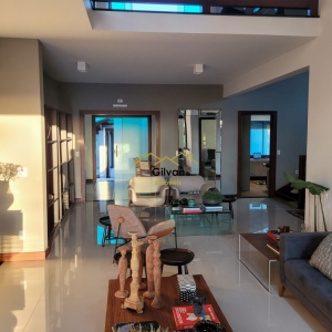 Sala ampla em ambiente integrado a sala de estar.