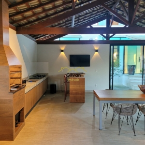 Área gourmet completa e Deck externo em madeira.